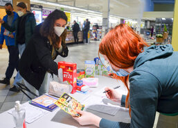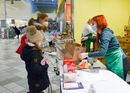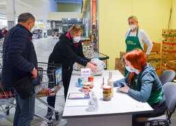 Dárci v průběhu celého dne přispívali dobrovolníkům z Dobrovolnického centra Charity Česká Lípa do banánových krabic trvanlivé potraviny a základní hygienické zboží pro matky samoživitelky či rodiny v existenční tísni.